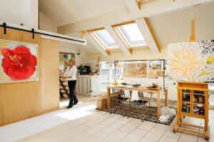Naast het zelf artistiek bezig zijn vind ik het heerlijk om tentoonstellingen in te richten. Een goede tentoonstelling maakt beeldende kunst toegankelijk(er) voor een breed publiek. En dat is nodig: deze rijkdom van kunst & cultuur biedt en verbeeldt iets wezenlijks, en is van daaruit onmisbaar voor ons allemaal!"